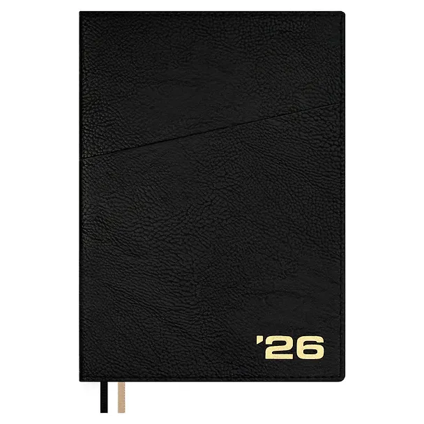 1 679 ₽ 1 399 ₽Ежедневник дат. 2026г. А5+ 176л "Шеврет" черный, кожзам, интегр. переплет, тисн. фольгой, внутренний блок в клетку, карман, офсет, закругл.углы, справ.мат-лы, 2 ляссе, инд.уп Купить