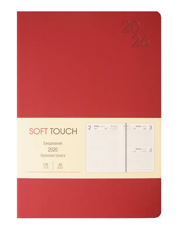 Ежедневник дат. 2026г. А5 176л "SOFT TOUCH" розовый кварц, интегр.переплет, иск.кожа, тонир.блок, скругл.углы, цв.торец, ляссе, инд.уп