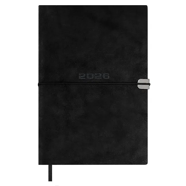 Ежедневник датированный 2026 ESCALADA, #ДУМАЙ КАК МИЛЛИАРДЕР, А5, 176 л., арт. 70273/ 15 ТИВОЛИ ГЛОСС ЧЁРНЫЙ (кожзам: 146x211 мм, мягкий переплёт, материал обложки: искусственная кожа "Тиволи глосс"; декор: блинтовое тиснение; способ крепления блока: ниткошвейный; вн. блок: 176 л., белый офсет 70 г/м², печать в две краски (линия), справочный материал: есть; перфорация углов блока: нет; отделка среза: окрашивание пантоном; закладка/-и: одно ляссе; каптал: есть; форзац: печать пантоном; особенности: в блоке использованы мотивирующие высказывания из книги "Думай как миллиардер", помогающие сформировать правильное отношение к финансам, профессиональной деятельности, своим способностям и к жизни в целом, застёжка-резинка; персонализация возможна: да; индивидуальная упаковка: промостикер + ПЭТ-пакет)