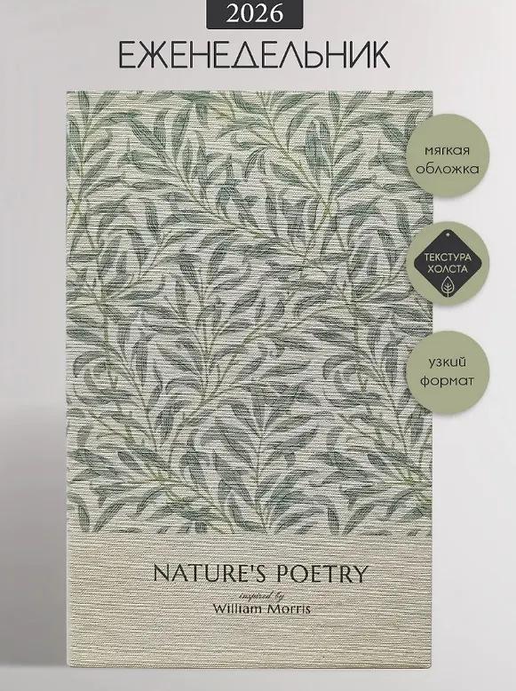 Удобный, компактный, лёгкий дамский еженедельник. Хорошая прошивка, приятный дизайн, приятно держать в руках. Есть 2 закладки - ляссе, несколько страниц для заметок в начале и в конце еженедельника, страницы для записи важных дат по месяцам, календари на 2026 и 2027 годы. Твёрдые корочки отсутствуют, поэтому, думаю, не займёт много места в сумке. Очень придирчиво выбирала еженедельник, остановилась на этом. Покупкой довольна.
