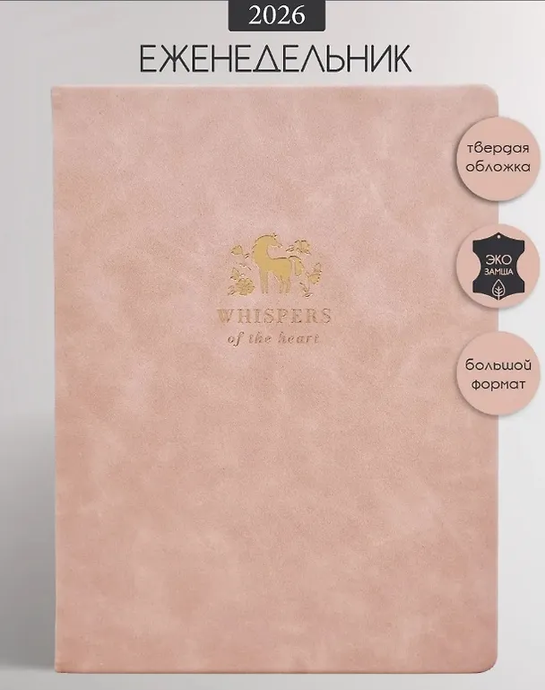 Датированный еженедельник на 2026 год от Infolio формата А4- (190х250 мм) - это идеальный помощник для всех, кто ценит организацию и планирование и хочет подчеркнуть свой стиль. С его помощью легко держать перед глазами все дела, задачи, важные события и вести расписание. Этот удобный планировщик идеально подходит для ежедневного использования. Он довольно компактный и легкий, поэтому его можно держать как на рабочем столе, так и взять с собой на встречу. Благодаря твёрдой обложке из качественной искусственной кожи он будет хорошо защищен от повреждений и влаги. Ниткошвейное скрепление очень долговечно, поэтому изделие верно прослужит весь год. Еженедельник содержит 88 листов (176 страниц) хорошей плотности 70 г/м2 цвета слоновой кости, что делает их комфортными для записей. Неделя на одном развороте и разметка в линейку с почасовой разметкой на каждый день помогут структурировать свои задачи и планы. А небольшой календарь на текущий месяц на каждом развороте окажется очень удобным для быстрого планирования. Также внутри блока: титульный лист для записи данных, разворот с календарями на 2026-2027 года, страницы для дополнительных заметок и планер перед каждым месяцем, чтобы перед глазами были сразу все самые важные задачи. А две удобные широкие атласные закладки помогут быстро найти нужные развороты. Настольный планер идеально подходит для учителей и студентов для ведения расписания занятий или офисным работникам для организации дел. Будет удобен для мастеров маникюра и парикмахеров для записи клиентов. Ежедневники и еженедельники с символом года 2026 Лошадью и вдохновляющим дизайном - практичный подарок для друзей, коллег и партнёров на Новый год. И просто незаменимый женский блокнот для записей.
