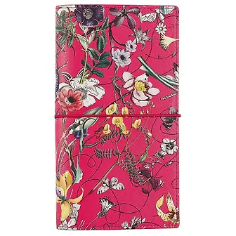 Обложка - съемная с горизонтальной резинкой, люксовая искусственная кожи с цветочным принтом. Цвет - малиновый.