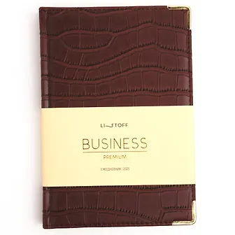 Отличный ежедневник. Датированный. Это очень удобно. Превосходная толстая обложка под крокодилью кожу приятного коричневого цвета. Удобный, не слишком маленький формат для подробных записей, планирования работы. Есть календарь на целый год. Листы не тонкие. Цвет страниц не яркий, приятный глазу. Такой ежедневник прекрасно подойдёт для делового подарка, презента.