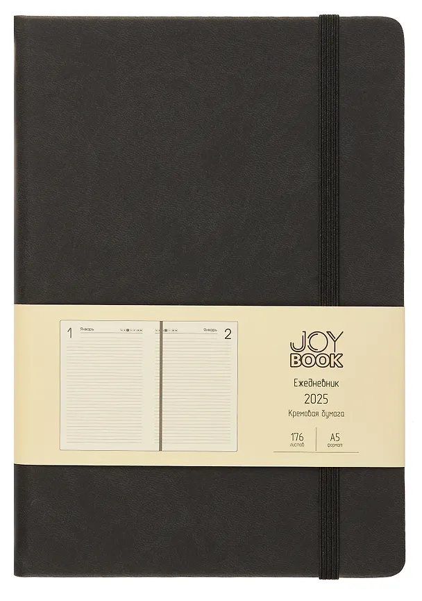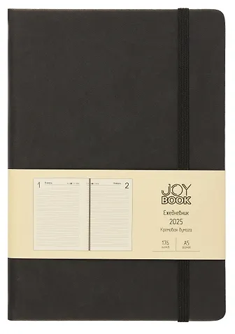 Ежедневник дат. 2025г. А5 176л "Joy Book" черный агат, 7Б, тв.переплет, иск.кожа, резинка, карман, скругл.углы, тонир.блок, ляссе, инд.уп