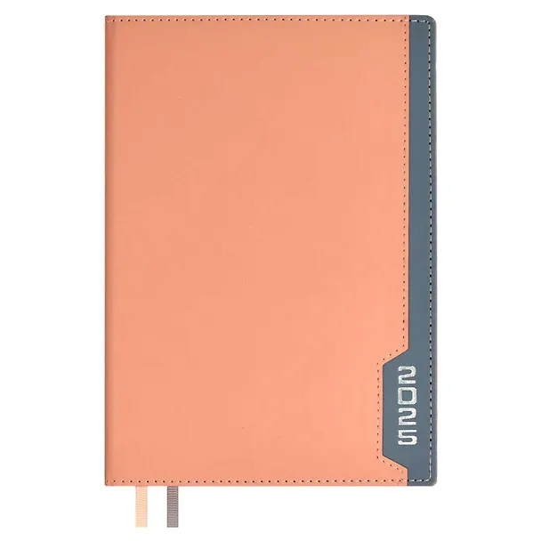 Ежедневник дат. 2025г. А5 176л "Руффо" розовый, серый, кожзам, тв.переплет, тиснение фольгой, офсет, ляссе