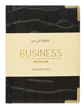 Ежедневник дат. 2025г А6 176л "Business premium. Impact" черный, 7Б, тв.переплет, иск.кожа, обл.поролон, мет.уголки, тонир.блок, цв.торец, справ.мат-лы, ляссе