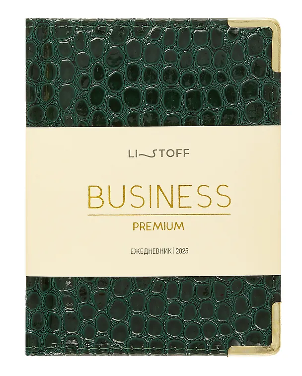 Ежедневник дат. 2025г А6 176л "Business premium. Lizard" зеленый, 7Б, тв.переплет, иск.кожа, обл.поролон, мет.уголки, тонир.блок, цв.торец, справ.мат-лы, ляссе