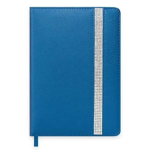 Ежедневник недатированный арт.47574/10 НАППА СИНИЙ МЕТАЛЛИК + СЕРЕБРЯНЫЕ СТРАЗЫ (А5, 211х146, 320 стр., декорирован лентой из страз, стальной / серебряный фольгированный срез, обстрочка обложки по периметру нитками в цвет переплётного материала, твёрдый переплёт с поролоном, тонированный офсет, 70, одна краска, дизайн блока:линия ,печать форзаца: одна краска, ниткошвейный, закладка: одно ляссе, каптал: есть, спр. мат: есть, картонная коробка + ПЭТ-пакет)