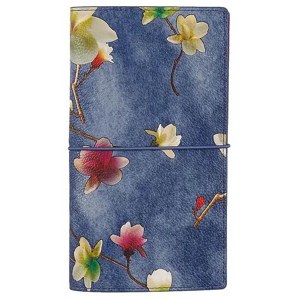 Обложка - съемная с горизонтальной резинкой, искусственная кожа с цветочным принтом. Цвет - синий. Блок - недатированный, скрепка, 128 стр., прямые уголки, информационный блок, бумага: 100% белизны, 70 г/м2, печать 2+2.