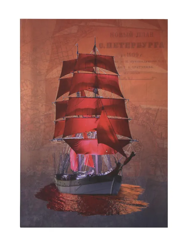 Ежедневник недатированный,формат А5, 256 полос.Оригинальная обложка на фоне старинной карты Санкт-Петербурга изображен парусник с " Алыми парусами"- символ надежды .Ежедневник-легче обычного, за счет интегрального переплета.Удобная сетка для планирования.