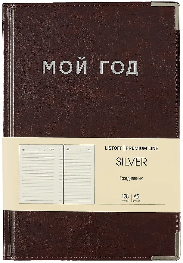 Ежедневник недат. А5 128л "SILVER" коричневый, иск.кожа 7Б, тв.переплет, мет.уголки, тонир.блок, тисн. фольгой, офсет, ляссе