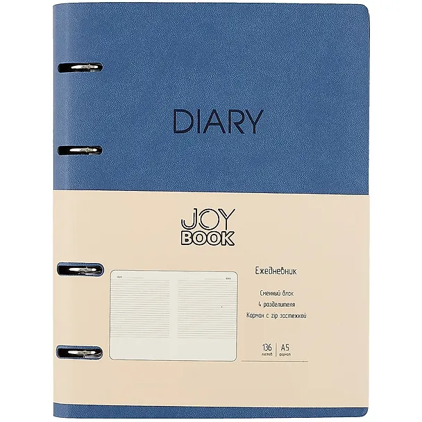 Ежедневник недат. А5 136л "Joy Book" синий деним, иск.кожа, интегр.переплет, 4 кольца, разделители