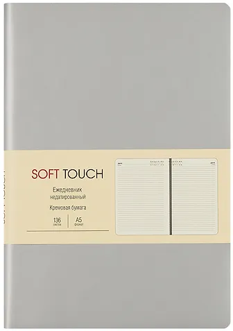 Ежедневник недат. А5 136л "SOFT TOUCH" серебро, интегр.обл., иск.кожа, тонир.блок, скругл.углы, цв.торец, ляссе