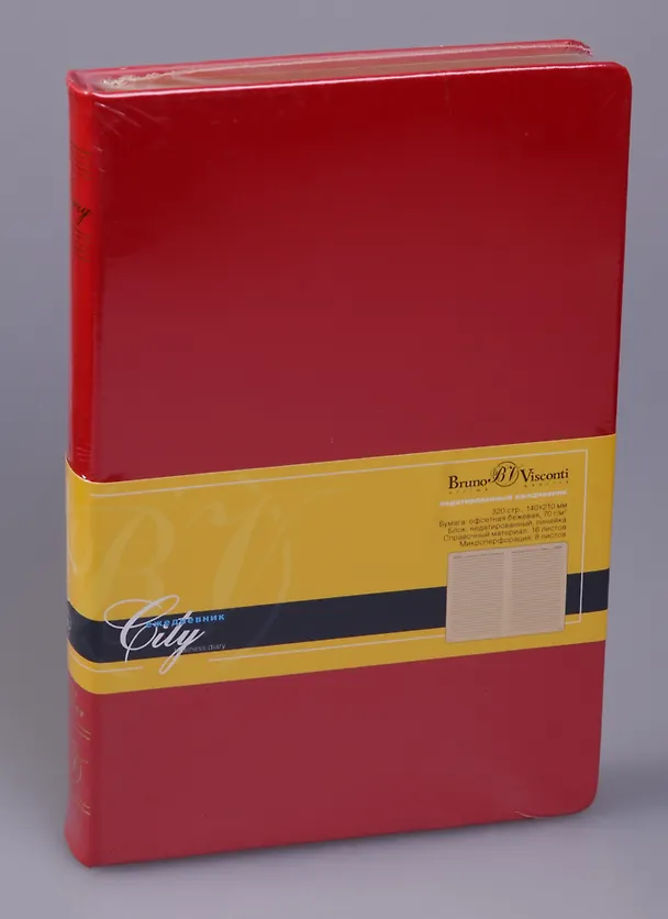 Ежедневник недат. А5 160л "CITY" красный, иск.кожа, золотой обрез, ляссе, Bruno Visconti