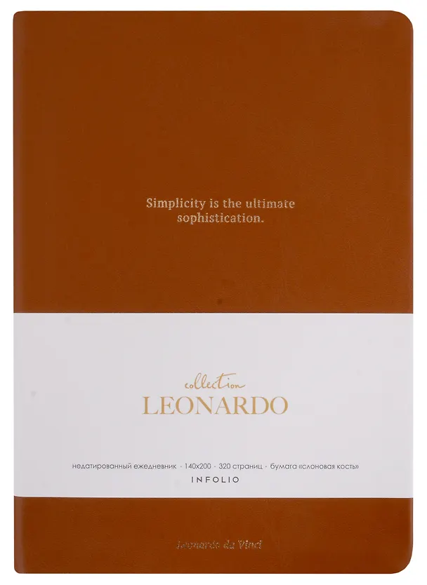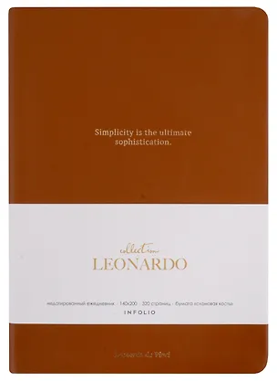 Ежедневник недат. А5 160л "Leonardo" карамельный, иск.кожа, интегр.переплет, тонир.блок, отд.фольгой, ляссе