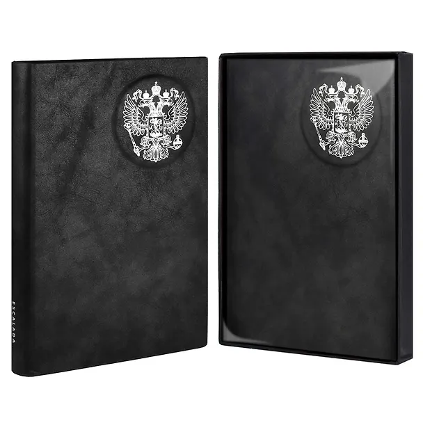 Ежедневник недатированный ESCALADA, А5, 160 л., арт. 60756/ 10 ТИВОЛИ ЧЁРНЫЙ (кожзам: 146x211 мм, твёрдый переплёт, материал обложки: искусственная кожа "Тиволи"; способ крепления блока: ниткошвейный; декор: 3D-дизайн, тиснение фольгой; вн. блок: 160 л., кремовый офсет 70 г/м², печать в одну краску (линия), справочный материал: есть; перфорация углов блока: нет; отделка среза: фольгирование; закладка/-и: одно ляссе, каптал: есть; форзац: печать пантоном, особенности: запаянный край; персонализация возможна: да; индивидуальная упаковка: подарочная картонная коробка с ПВХ-крышкой + ПЭТ-пакет)