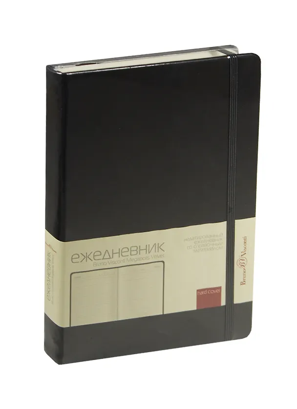 Ежедневник недат. А5 160л "MEGAPOLIS VELVET" черный, на резинке, иск.кожа, тонир.блок, карман, ляссе, Bruno Visconti