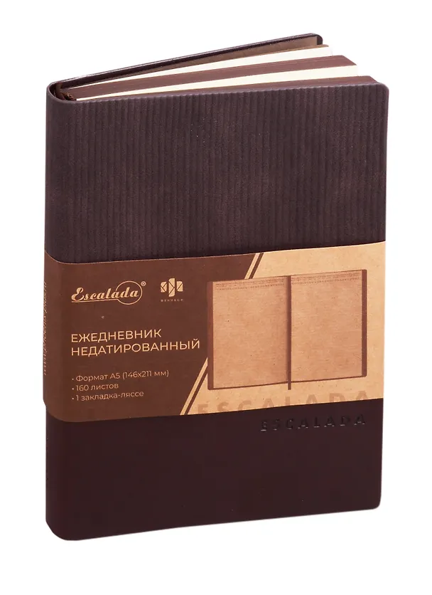 Ежедневник недат. А5 160л Шерфа/Пристин коричневый, кожзам, мягкий переплет, тонир.блок, ляссе