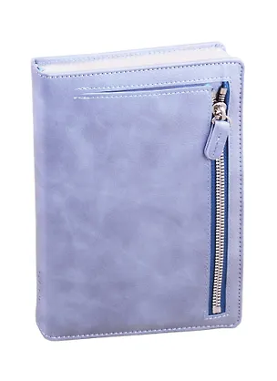 Ежедневник недат. А5 160л Шеврет голубой, кожзам, тв. переплет, с поролоном, карман на молнии, офсет, ляссе
