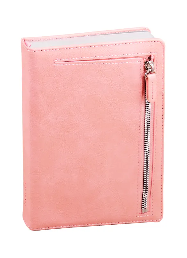 Ежедневник недат. А5 160л Шеврет розовый, кожзам, тв. переплет, с поролоном, карман на молнии, офсет, ляссе