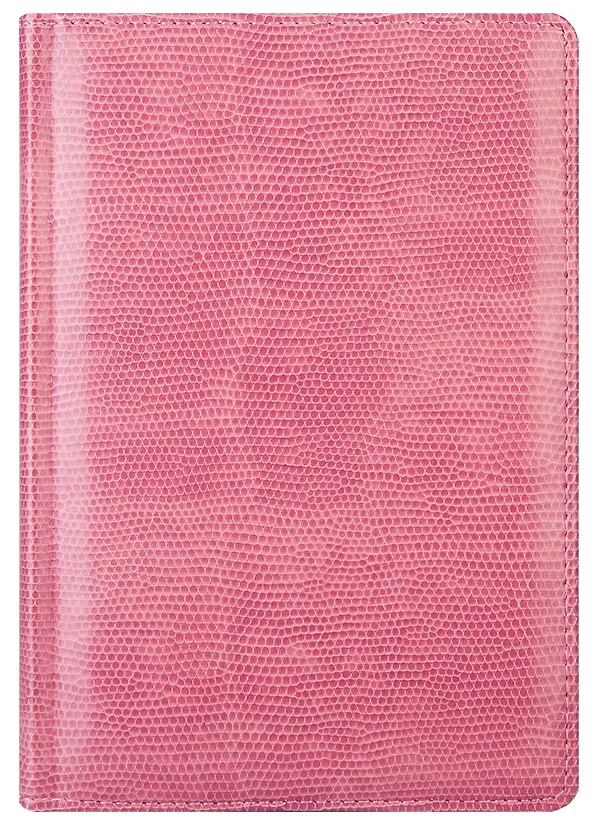 Компактный ежедневник в книжном переплете, выполненном из искусственной кожи с рисунком, имитирующим кожу змеи, Стильный аксессуар делового человека, ценящего практичные и качественные вещи, Имеет информационное наполнение: в начале изделия личные данные, карта мира, телефонные коды городов и стран, разлинованные страницы для записи дней рождения, в конце - алфавитная книга, Прекрасный подарок и незаменимый деловой инструмент в офисе, на деловых встречах и в командировках. Цвет: розовый, Формат листов: А5, Количество листов: 160, Размер: А5, Материал обложки: искусственная кожа.
