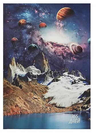 Очень красивый ежедневник- обложка с шикарным фото таинственной планеты на фоне скопления звезд Вселенной. Покрытие обложки матовое с участками ламинации , добавляет изображению дополнительный шик, смотрится как коллекционное издание, вызывая у владельца издания определенный позитив.