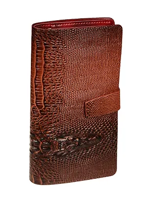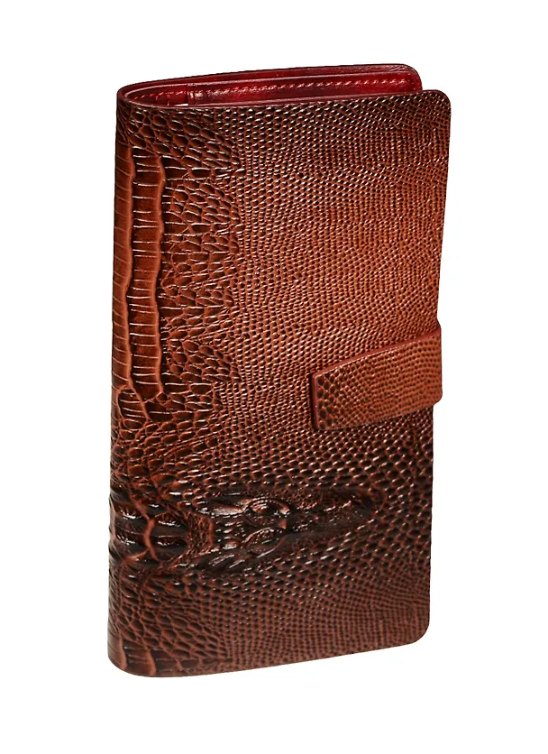 Обложка - съемная, переплетный материал с фактурой головы крокодила, цвет - коричневый.