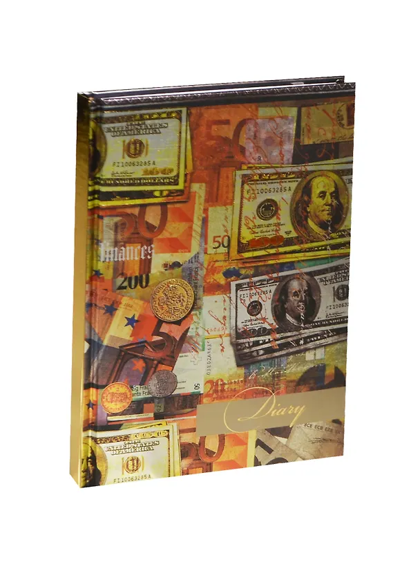 Ежедневник недатированный А5 80 листов "Деньги" 7БЦ, металлизированная бумага, тиснение фольгой, Феникс+