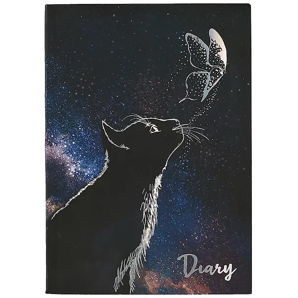 Обложка софт тач, безумно приятная на ощупь, не очень жёсткая, но достаточно прочная и очень красивая. Кошка, бабочка и надпись все блестит. В начале все стандартно как во всех ежедневниках личные данные, меры измерения, коды городов,стран и тп, важные даты , контакты, телефоны. Есть планировщик на год по месяцам. Ежедневник не датированный, что для меня тоже плюс.