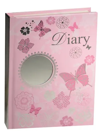 Ежедневник с зеркальцем арт.39760/20 БАБОЧКИ НА РОЗОВОМ (А6+, 240 стр, тисн. серебр. голограф. фольгой, одноцв. печать внутр. бл., ляссе, обл. 7БЦ под глянц. пл.)