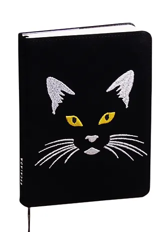 Ежедневник недат. А6+ 120л "Велюр" черный, кожзам, тв. переплет, вышивка, тонир.блок, ляссе