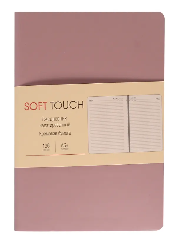 719 ₽ 599 ₽Ежедневник недат. А6+ 136л "SOFT TOUCH" сумерки, интегр.переплет, иск.кожа, тонир.блок, скругл.углы, цв.торец, ляссе Купить