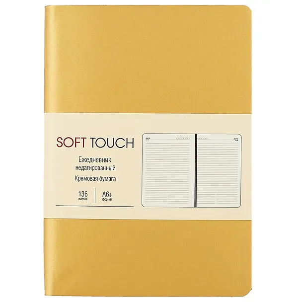 Ежедневник недатированный А6 136 листов "SOFT TOUCH" винтажное золото, интегральная обложка, искуственная кожа, тонированный блок, скругленные углы, цветной торец, ляссе