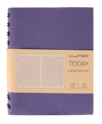 Недатированный ежедневник Listoff "Today" в интегральном переплете с евроспиралью, формата А6. Обложка выполнена в премиальной мягкой искусственной коже. Внутренний блок представлен 152 листами высококачественной тонированной бумаги плотностью 70 г/м2 в клетку.