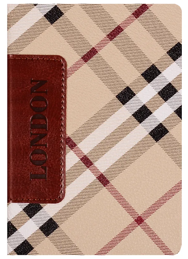 Обложка - твердая, высококачественная искусственная кожа с принтом а-ля "Burberry", цвет - бежевый, нашивка с блинтовым тиснением