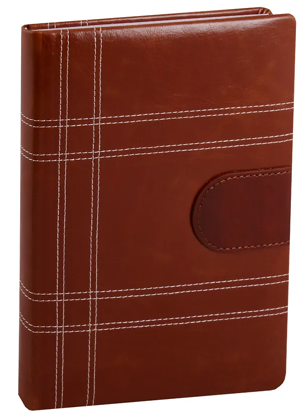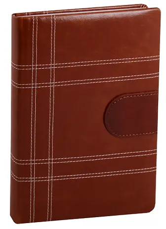 Обложка - твердая с поролоном, искуственная кожа, цвет - коричневый, декоративная прострочка. Блок недатированный, 320 стр., прямые уголки, 1 широкое ляссе, информационный блок, бумага: цвет - 100 % белизны, 70 г/м2, печать 2+2.