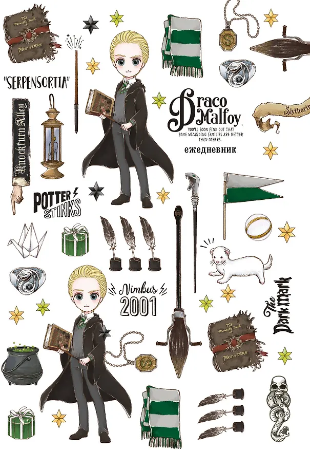 Наверное, самый лучший ежедневник в моей жизни – из-за наличия Драко Малфоя на обложке, конечно же. Подойдёт в подарок истинным поттероманам и просто любителям слизеринца. Пришел вовремя, без каких-либо повреждений. Обложка оказалась очень плотной, рисунок на ней яркий и качественный. Странички внутри не просвечивают, хоть и тонкие, писать и составлять планы достаточно удобно. Рекомендую!