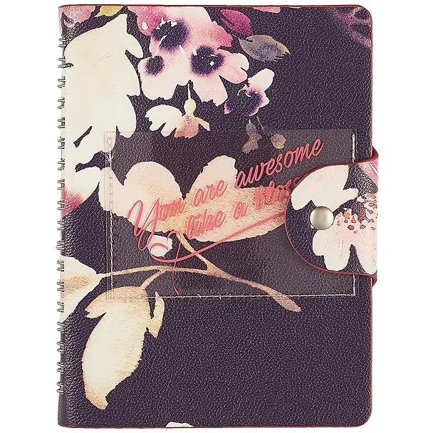 Обложка - мягкая, полускрытая спираль, гладкая искусcтвенная кожа с печатью. Блок недатированный, 192 стр, прямые уголки, бумага: цвет - 100 % белизны, 70 г/м2, печать 2+2. Особенности: пластиковый карман с шелкографией.