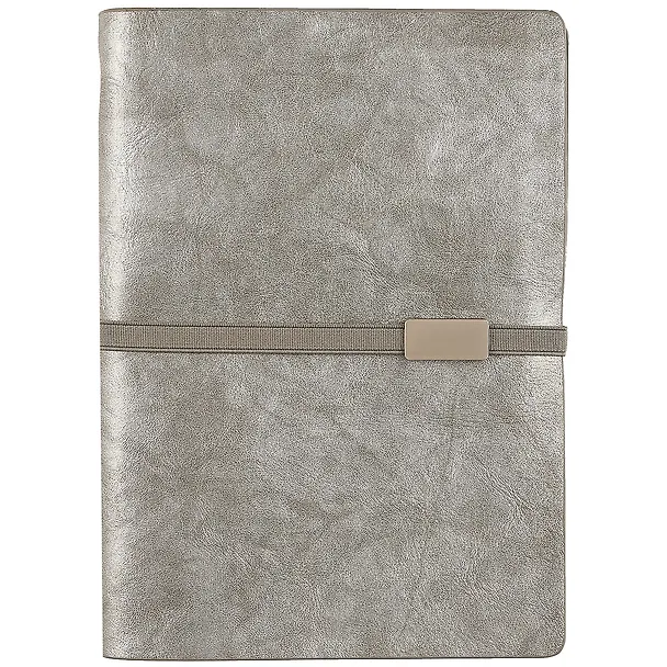 Ежедневник-органайзер недат. А5 160л "Жатка" серебряный, кожзам, мягкий переплет, тонир.блок, 4 кольца, гориз.резинка