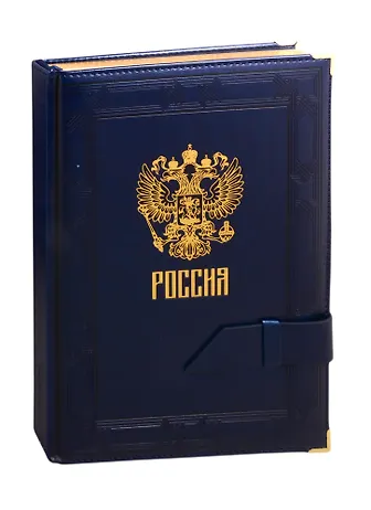 Ежедневник полудат. А5+ 192л 175*245 Сариф синий, тиснение Герб РФ, кожзам, тв. переплет, поролон, тонир.блок, ляссе