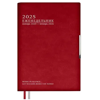 Тонкий, тонкая хорошая бумага, 2 закладки, есть цели на год и подведение итогов, приятный дизайн, красная мягкая обложка, легкий