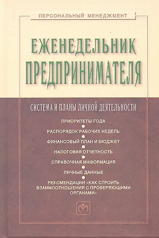 В деятельности предпринимателя, включающей управление бизнесом и финансами, работу с персоналом, ведение отчетности, самообразование, первостепенное значение имеют управление собственным временем и организация личного труда. В этом большую помощь предпринимателю может оказать специальный еженедельник предпринимателя. В нем положены удобные формы для планирования важнейших дел на год и месяцы; распорядок недель с возможностью фиксировать деловые встречи, телефонные переговоры и рождающиеся идеи; формы для бизнес-планирования, планирования командировок и работы с командой предпринимателя, большой отчет полезной справочной информации.