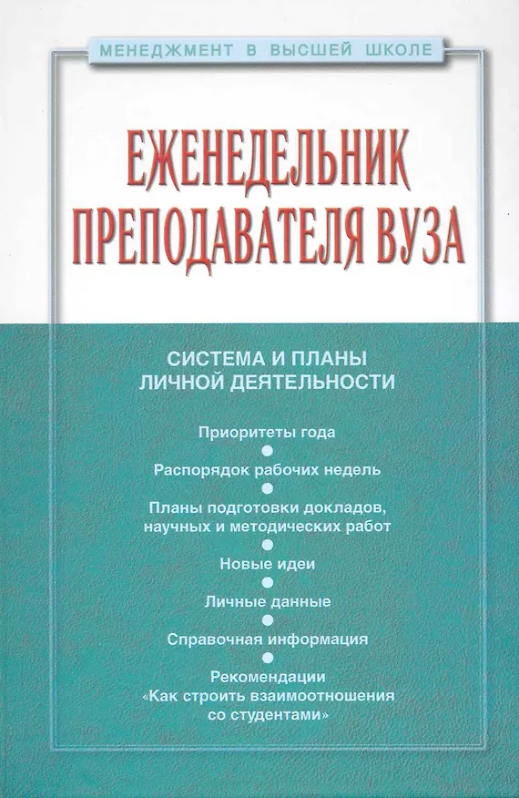 Еженедельник преподавателя высшего учебного заведения позволяет эффективно организовывать личную деятельность и использование времени.