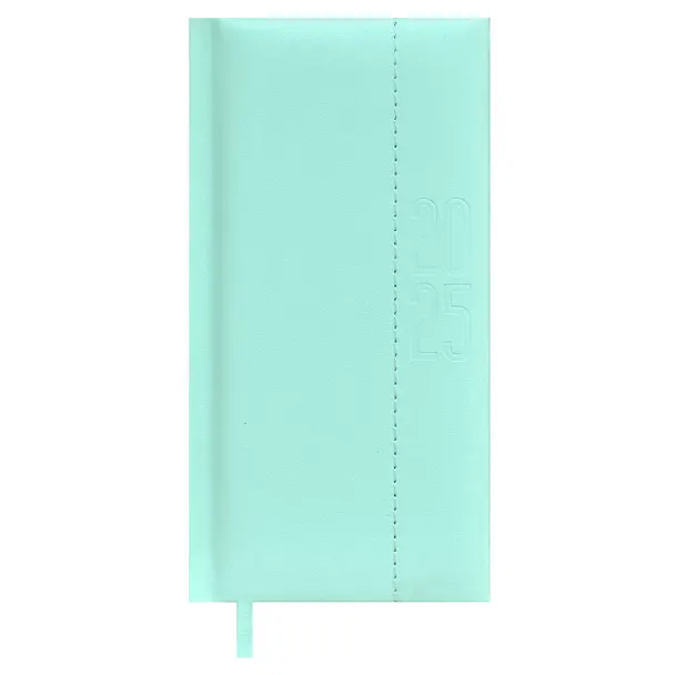 Еженедльник дат. 2025г. 64л 87x166 "Джут", мятный, карманный, вертик, кожзам, тв.переплет, обл.поролон, блинт.тиснение, офсет, ляссе