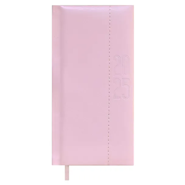 Еженедльник дат. 2025г. 64л 87x166 "Джут", розовый, карманный, вертик, кожзам, тв.переплет, обл.поролон, блинт.тиснение, офсет, ляссе