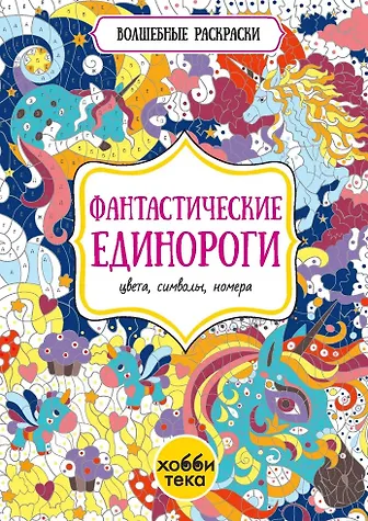 Познавательная книга-раскраска для детей из серии «Волшебные раскраски» «Фантастические единороги. Цвета, символы, номера» будет интересна девочкам любого возраста. В этой книге ты найдёшь прекрасных единорогов в самых разных ситуациях и местах: в лесу, в сказочном замке, с принцессами и волшебными существами и великолепными растениями. Добро пожаловать в большой магический мир единорогов, полный тайн и загадок! Раскрась его — и он оживет! Пользуясь палитрой, в которой даны обозначения цветов, раскрась картинки и познакомься со сказочным миром единорогов. Это увлекательное и полезное занятие для любознательных ребят. Оно развивает воображение, ассоциативное мышление, внимание и художес