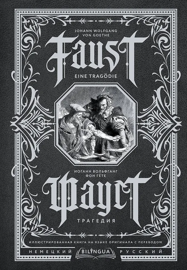 Одно из величайших произведений литературы в невероятнейшем оформлении. Замечательный способ не просто окунуться в Фауста, но и подтянуть уровень немецкого языка. Хороший перевод представлен параллельно с текстом оригинала. Данное издание не оставит равнодушным любителей Фауста, потому что увидев однажды - уже не забудешь данную книгу. Очень хороший вариант для подарка или для приобретения в свою домашнюю библиотеку.