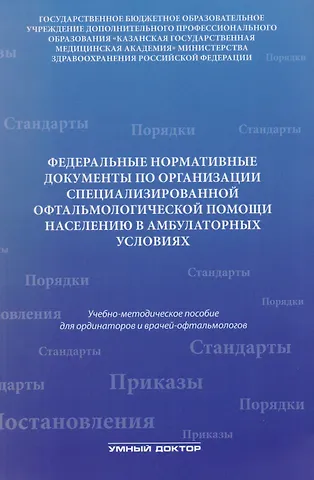 В учебно-методическом пособии представлены действующие (на момент написания пособия) нормативно-правовые документы, регламентирующие организацию офтальмологической помощи населению (взрослым и детям) в амбулаторных условиях (за исключением стандартов и федеральных рекомендаций по оказанию офтальмологической помощи взрослым и детям амбулаторно, которые выделены в отдельные пособия). Издание предназначено для системы послевузовского профессионального образования врачей-офтальмологов.