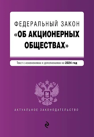 Настоящее издание содержит текст Федерального закона 26.12.1995 № 208-ФЗ «Об акционерных обществах» с изменениями и дополнениями на 2024 год. К изменениям, вступающим в силу позднее, вместе с редакцией нормы, действующей на эту дату, приводится норма в новой редакции и указывается дата, с которой она вступает в силу.