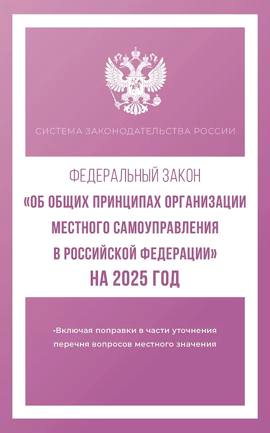Данное издание включает текст Федерального закона от 06.10.2023 № 131 -ФЗ "0б общих принципах организации местного самоуправления в Российской Федерации" на 2025 год.